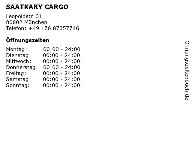 | Öffnungszeiten SAATKARY CARGO in München anzeigen | |