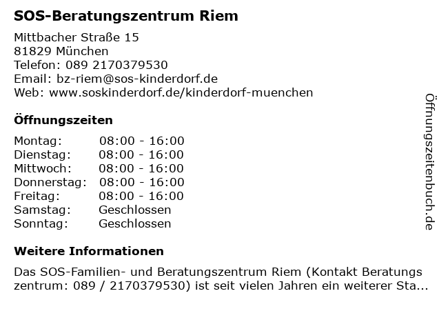 Branchen & Suchbegriffe zu SOS-Beratungszentrum Riem:beratungszentrum, riem, sos |