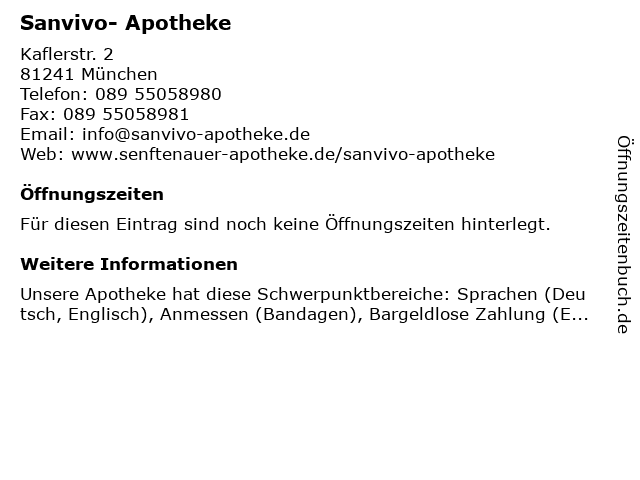 Öffnungszeiten Sanvivo- Apotheke in München anzeigen | |