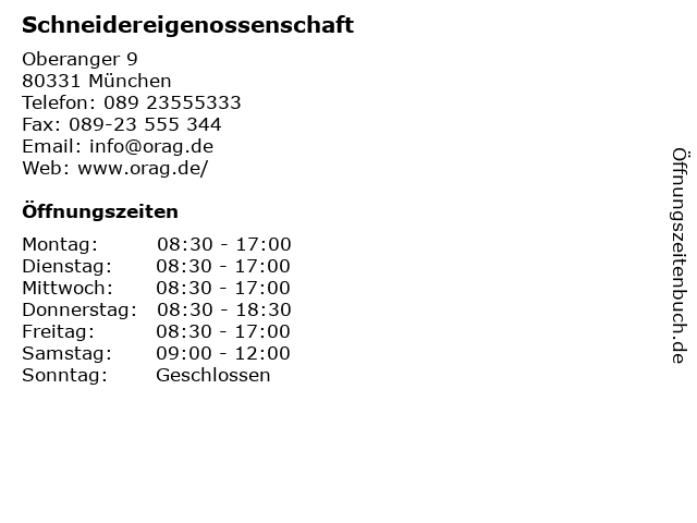 | Öffnungszeiten Schneidereigenossenschaft in München anzeigen | |