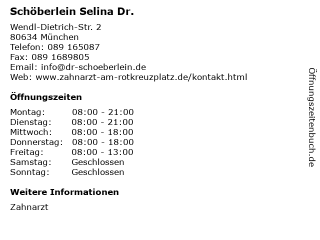 | Öffnungszeiten Schöberlein Selina Dr. in München anzeigen | |