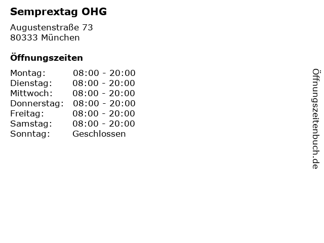 | Öffnungszeiten Semprextag OHG in München anzeigen | |