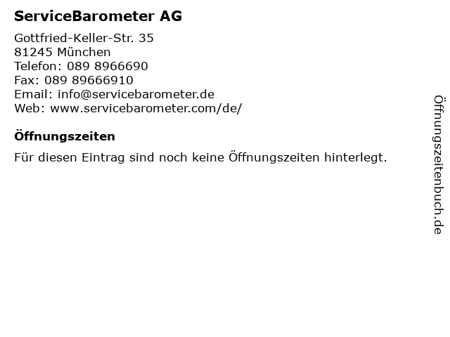 | Öffnungszeiten ServiceBarometer AG in München anzeigen | |