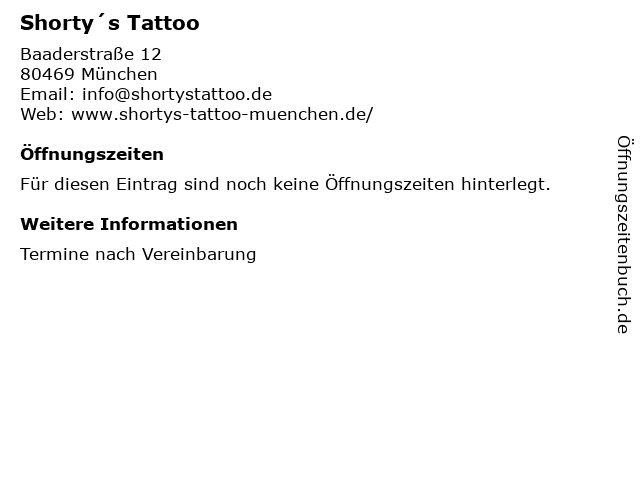 Öffnungszeiten Shorty´s Tattoo in München anzeigen | |