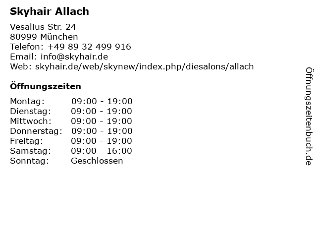 | Öffnungszeiten Skyhair Allach in München anzeigen | |