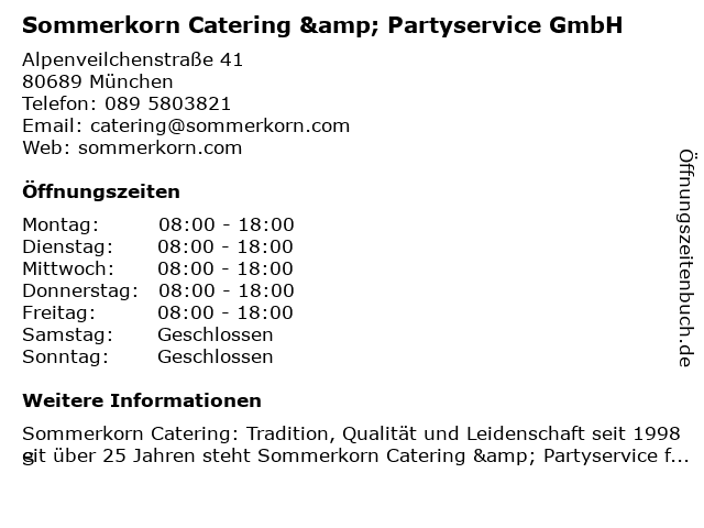 Branchen & Suchbegriffe zu Sommerkorn Catering & Partyservice GmbH:barkeeper, catering, festsaal, getränkeservice, partyservice, privatkoch, sommerkorn |