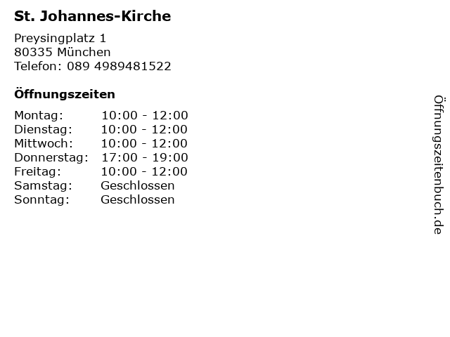 | Öffnungszeiten St. Johannes-Kirche in München anzeigen | |