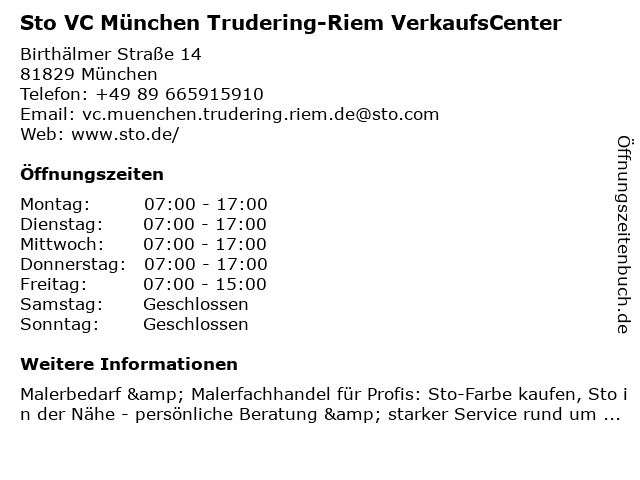 1 G.Hoffmann - München-Trudering - Abhollager (Entfernung: 0,06 km) Birthälmer Straße 14, 81829 München 2 6 Katholisches Pfarramt St. Peter und Paul - Trudering (Entfernung: 0,56 km) Lehrer-Götz-Weg 23, 81829 München |
