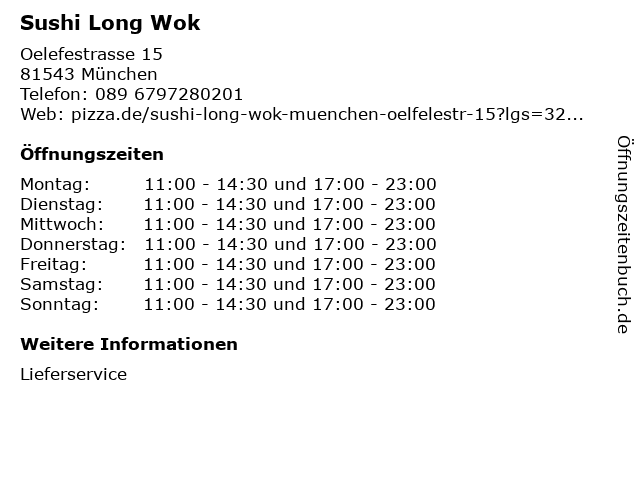 | Öffnungszeiten Sushi Long Wok in München anzeigen | |