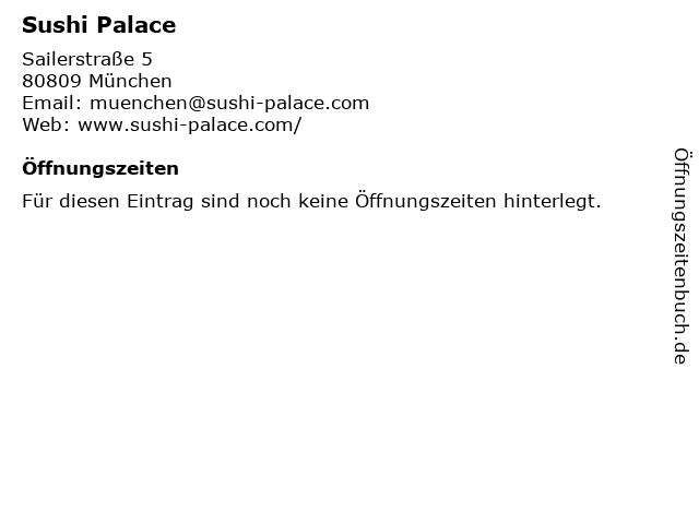 | Öffnungszeiten Sushi Palace in München anzeigen | |