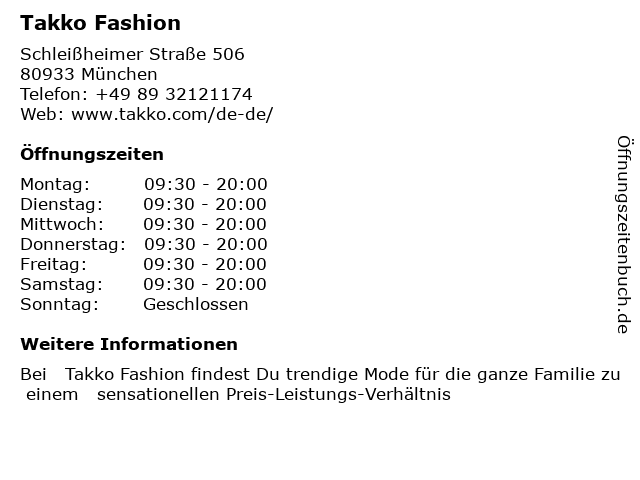 Öffnungszeiten Takko Fashion in München anzeigen | |