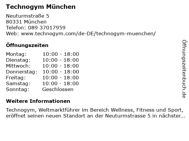 | Öffnungszeiten Technogym München in München anzeigen | |