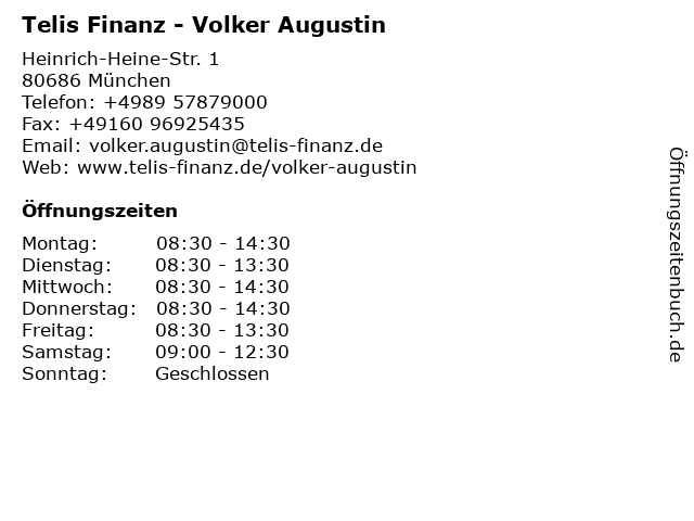 2 Karl medi-finanz Consulting GmbH Müller-Lanzl Finanzdienstleistung (Entfernung: 0,65 km) Agnes-Bernauer-Str. 30 C, 80687 München 4 Kurt Höllein Finanz- und Versicherungsmakler (Entfernung: 1,33 km) Von-der-Pfordten-Str. 27, 80687 München 5 Orthopädische Gemeinschaftspraxis in München-Laim Dr.med. Thomas Naumann und Dr. med. Volker Berges (Bestellpraxis) (Entfernung: 1,44 km) Agnes-Bernauer-Str. 123, 80687 München 6 VSC Finanz- und Versicherungsmakler GmbH | München (Entfernung: 1,68 km) Fürstenrieder str. 216, 81377 München |