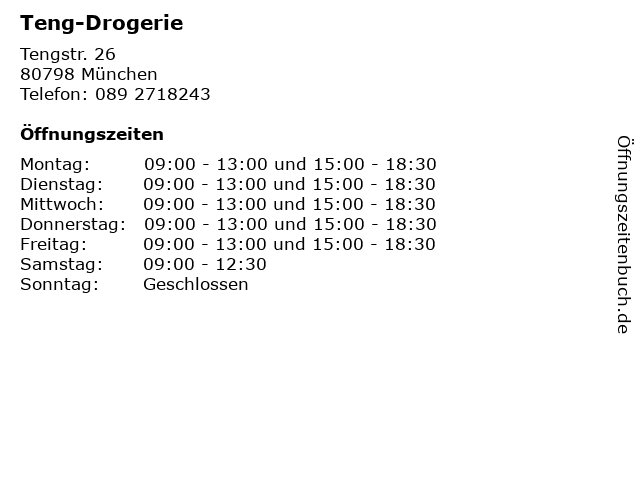 | Öffnungszeiten Teng-Drogerie in München anzeigen | |