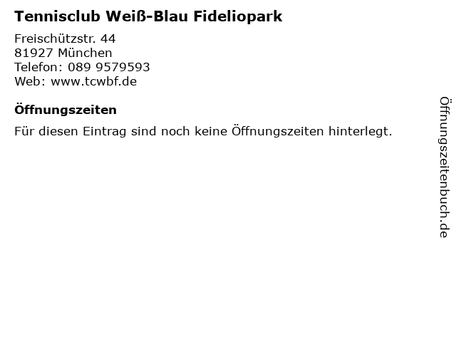 | Tennisclub Weiß-Blau Fideliopark anrufen | |