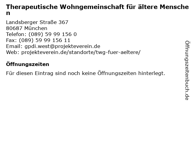 2 Barbara Lerch Therapeutische Praxis, Coaching NLP (Entfernung: 2,29 km) Planegger Str. 9 A, 81241 München 3 Dipl.-Psych. Barbara Lerch Therapeutische Praxis (Entfernung: 2,29 km) Planegger Straße 9a, 81241 München 5 Bayerische Gesellschaft für psychische Gesundheit e.V. Therapeutische Wohngemeinschaft (Entfernung: 4,22 km) Kiefersfeldener Str. 15, 81373 München 6 |
