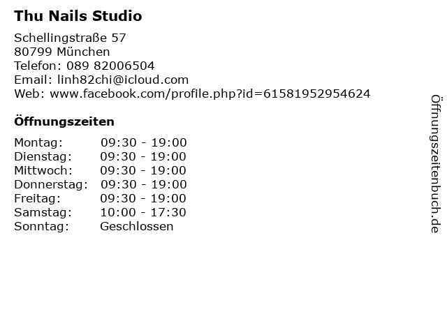 Öffnungszeiten Thu Nails Studio in München anzeigen | |