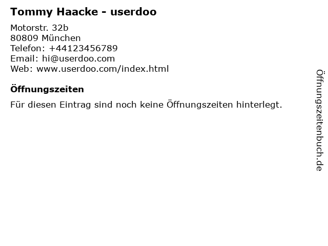| Öffnungszeiten Tommy Haacke - userdoo in München anzeigen | |