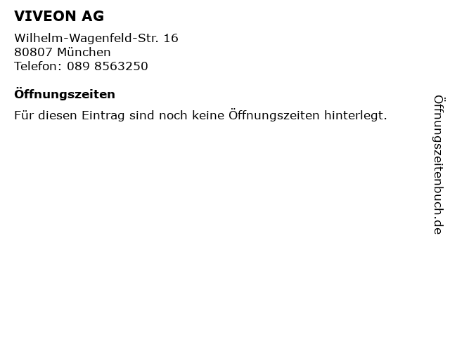 | Öffnungszeiten VIVEON AG in München anzeigen | |