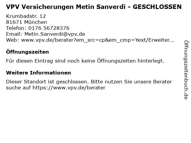 | VPV Versicherungen Metin Sanverdi - GESCHLOSSEN anrufen | |