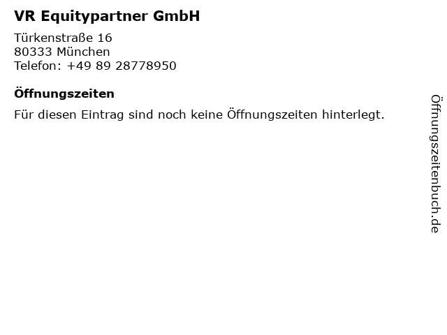 | Öffnungszeiten VR Equitypartner GmbH in München anzeigen | |