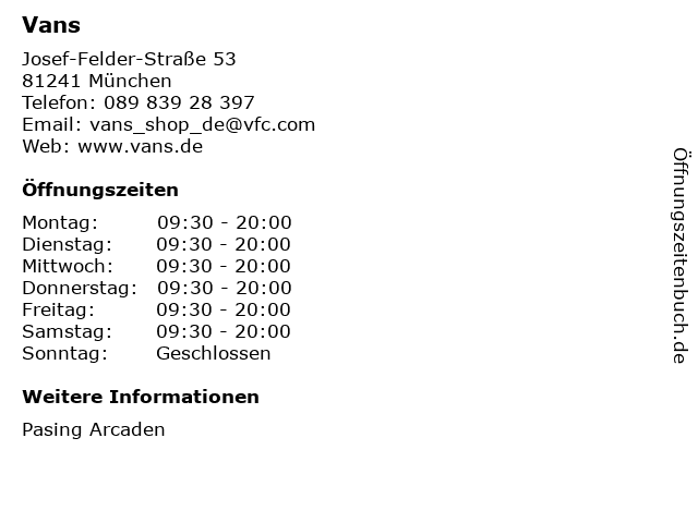 | Telefonnummer Vans in München (089 839 28 397) anrufen | |