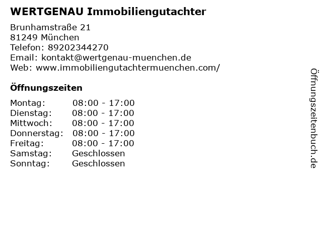 | Öffnungszeiten WERTGENAU Immobiliengutachter in München anzeigen | |