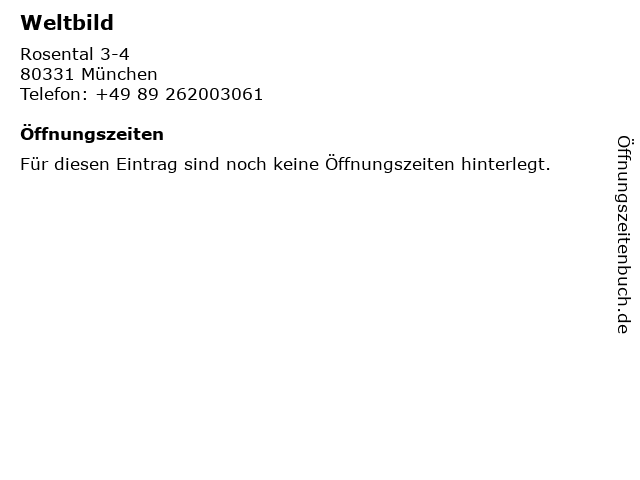 | Öffnungszeiten Weltbild in München anzeigen | |