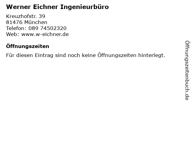 | Öffnungszeiten Werner Eichner Ingenieurbüro in München anzeigen | |