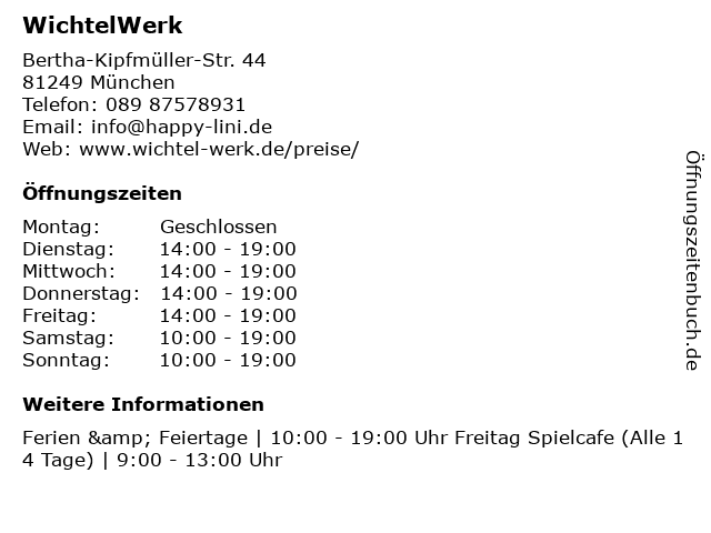 | Öffnungszeiten WichtelWerk in München anzeigen | |