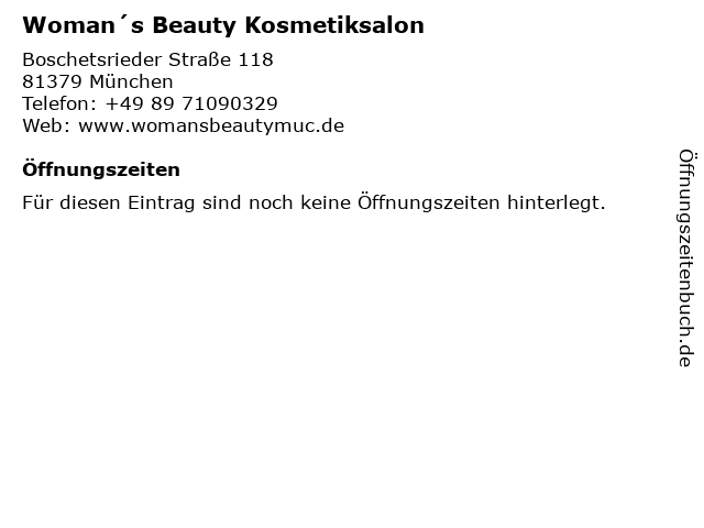 | Woman´s Beauty Kosmetiksalon anrufen | |