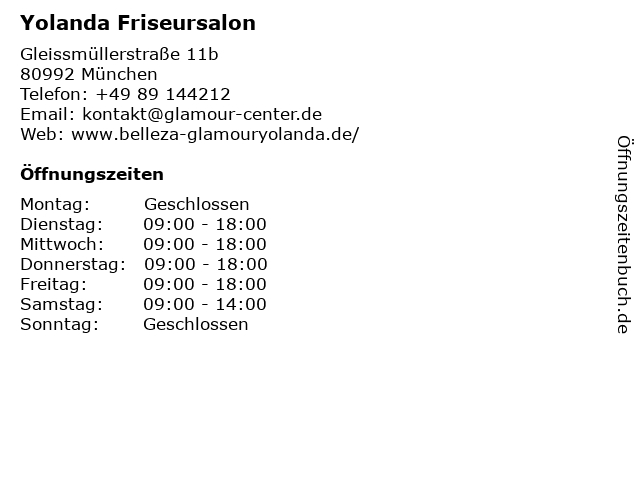 | Öffnungszeiten Yolanda Friseursalon in München anzeigen | |