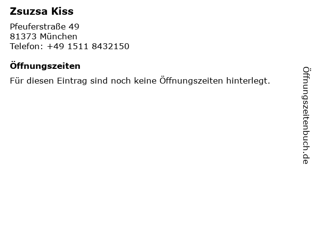 | Öffnungszeiten Zsuzsa Kiss in München anzeigen | |