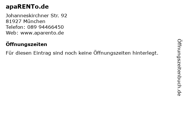 | Öffnungszeiten apaRENTo.de in München anzeigen | |