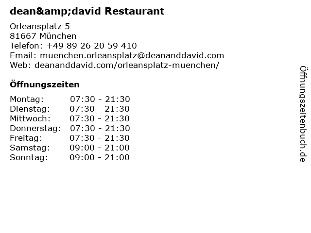 | Öffnungszeiten dean&david Restaurant in München anzeigen | |