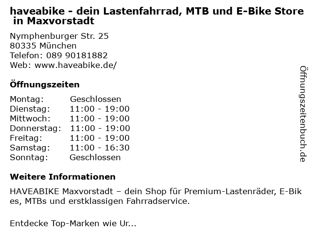 Branchen & Suchbegriffe zu haveabike - dein Lastenfahrrad, MTB und E-Bike Store in Maxvorstadt:bike, dein, fahrradgeschäft, haveabike, lastenfahrrad, maxvorstadt, mtb, reparaturservice für fahrräder, store |
