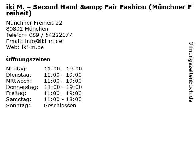 Branchen & Suchbegriffe zu iki M. – Second Hand & Fair Fashion (Münchner Freiheit):fair, fashion, freiheit, hand, iki, m., münchner, second, – |