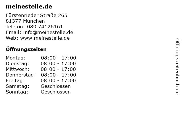 | Öffnungszeiten meinestelle.de in München anzeigen | |
