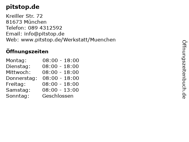 | Öffnungszeiten pitstop.de in München anzeigen | |