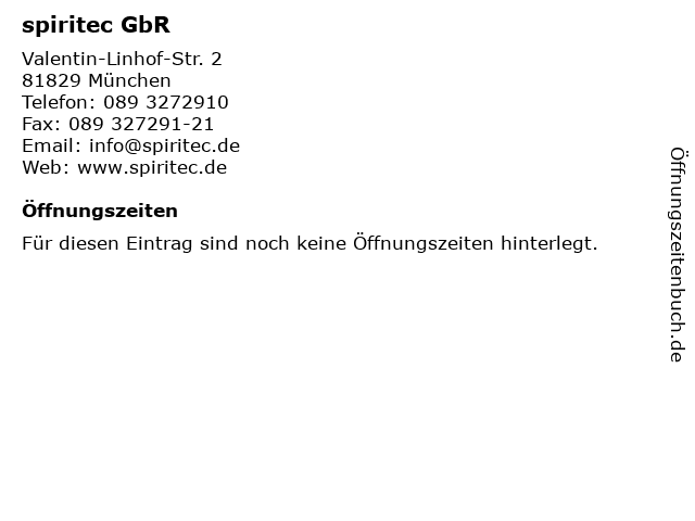 | Öffnungszeiten spiritec GbR in München anzeigen | |