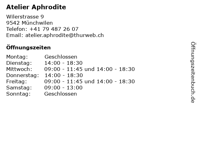 | Öffnungszeiten Atelier Aphrodite in Münchwilen anzeigen | |