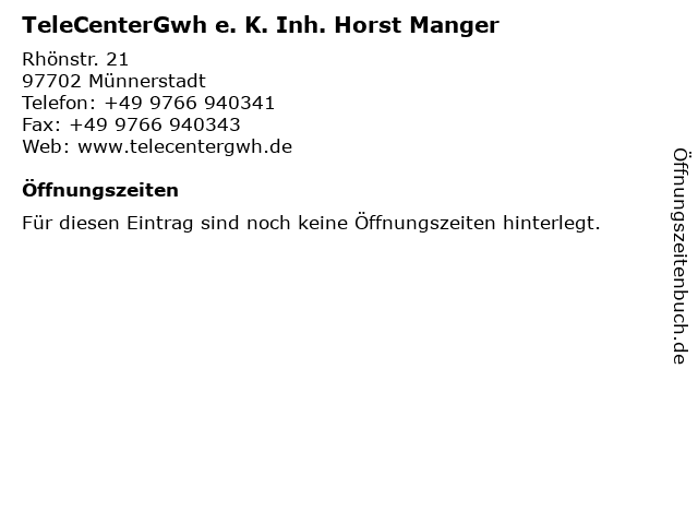 | TeleCenterGwh e. K. Inh. Horst Manger anrufen | |