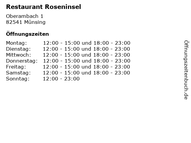 | Öffnungszeiten Restaurant Roseninsel in Münsing anzeigen | |
