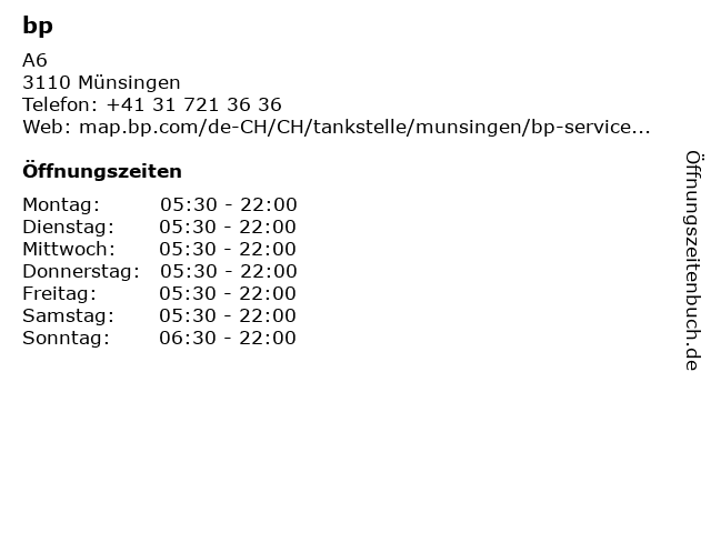 | Öffnungszeiten bp in Münsingen anzeigen | |