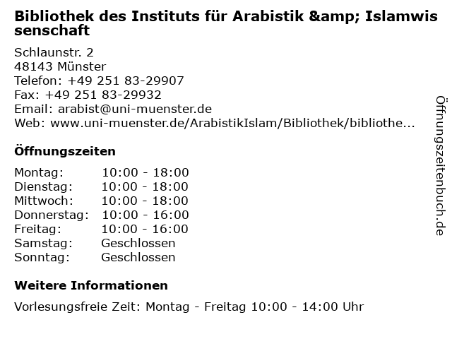 Branchen & Suchbegriffe zu Bibliothek des Instituts für Arabistik & Islamwissenschaft:arabistik, bibliothek, buch, buchscanner, des, instituts, islamwissenschaft, literaturen, sprachen |