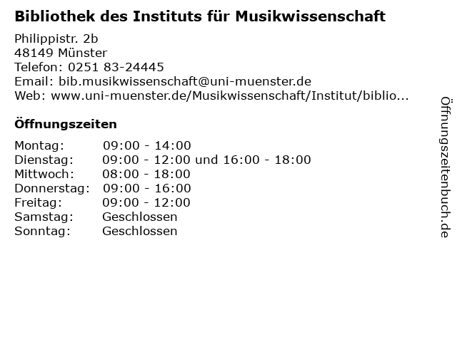 Branchen & Suchbegriffe zu Bibliothek des Instituts für Musikwissenschaft:bibliothek, buch, buchscanner, des, instituts, literaturen, musikwissenschaft, sprachen |