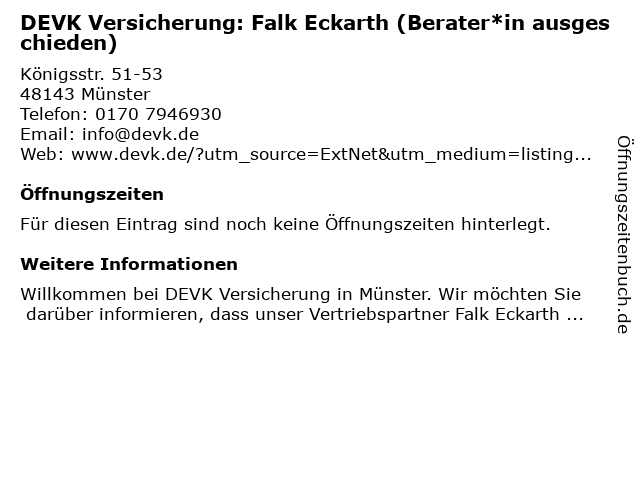 | DEVK Versicherung: Falk Eckarth (Berater*in ausgeschieden) anrufen | |