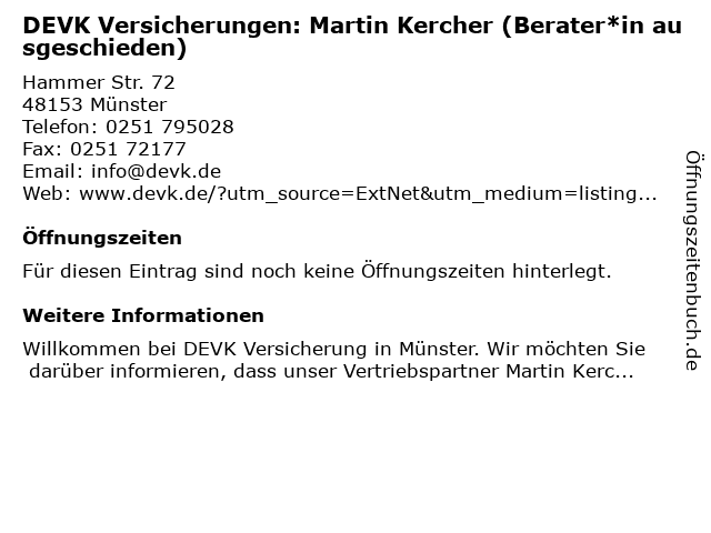 | DEVK Versicherungen: Martin Kercher (Berater*in ausgeschieden) anrufen | |