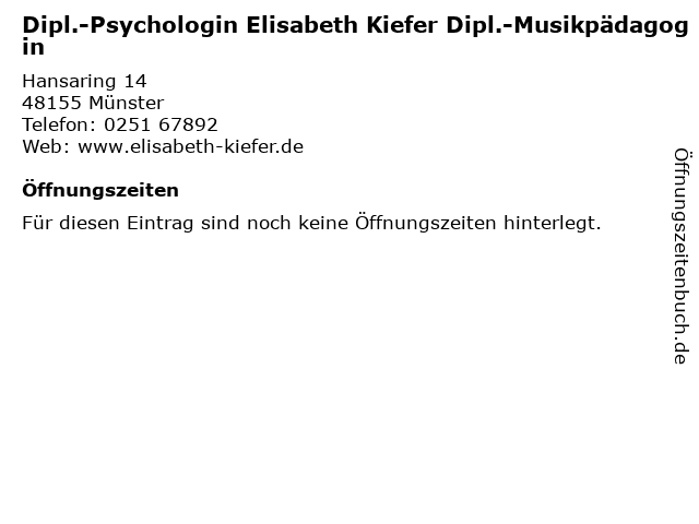 | Dipl.-Psychologin Elisabeth Kiefer Dipl.-Musikpädagogin anrufen | |