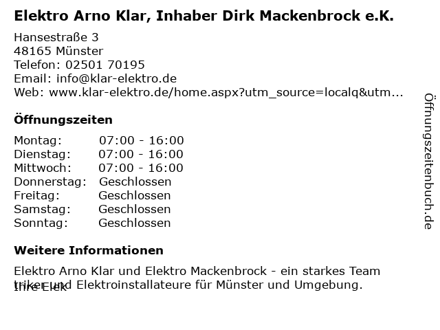 Branchen & Suchbegriffe zu Elektro Arno Klar, Inhaber Dirk Mackenbrock e.K.:arno, dirk, e.k., elektro, inhaber, klar, mackenbrock |